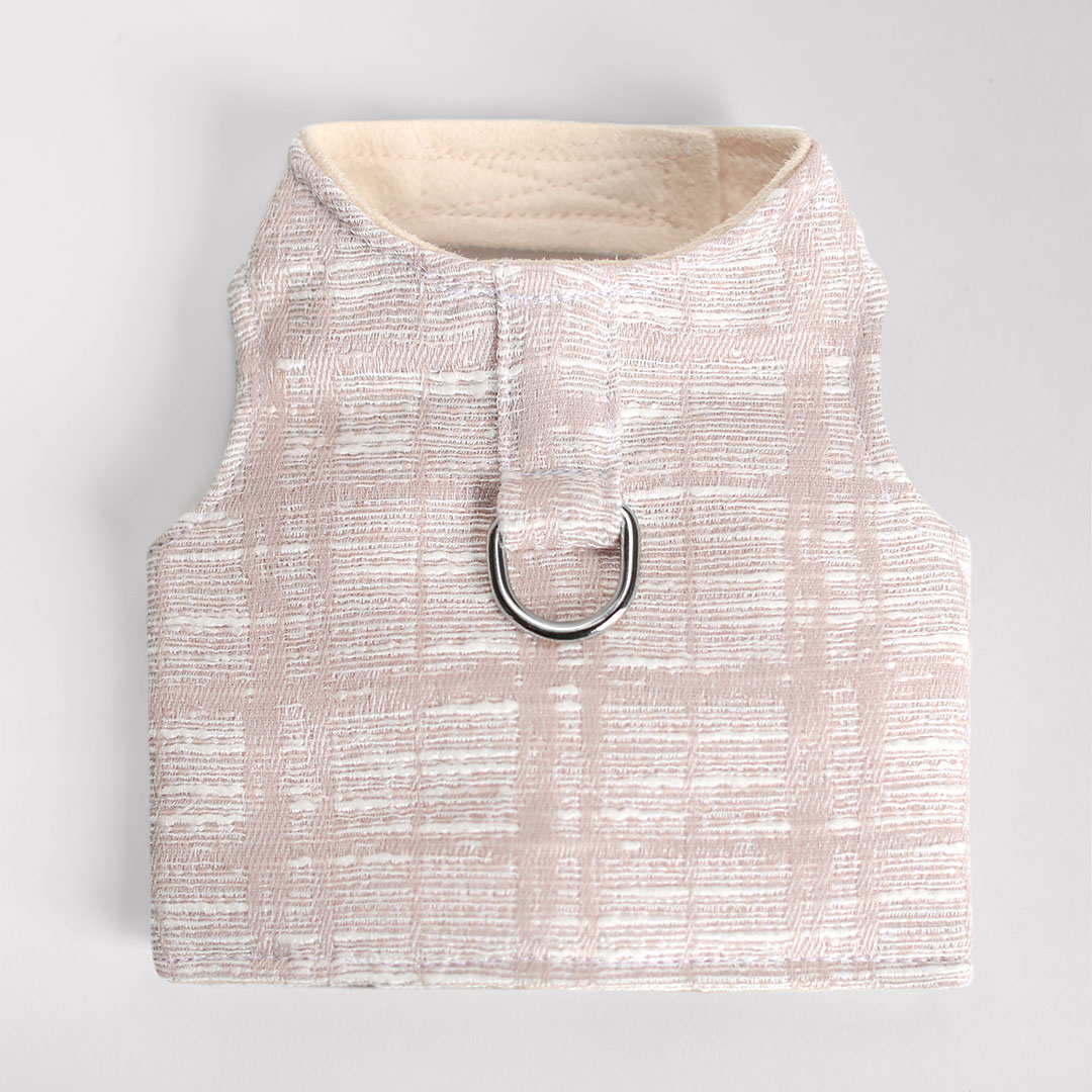 Your precious pooch will look regal in this Gia Dog Harness By Hello Doggie. The beautiful soft tweed blend fabric has a timeless design that is sure to please the eye of any fur baby mom or dad! This harness features adjustable velcro straps for easy and a gold d ring that ensures your pup stays safe at all times. Limited Edition MSRP $64.00 Cream: Sold Out * Harnesses are handmade sizes may vary slightly. Made in USA.
