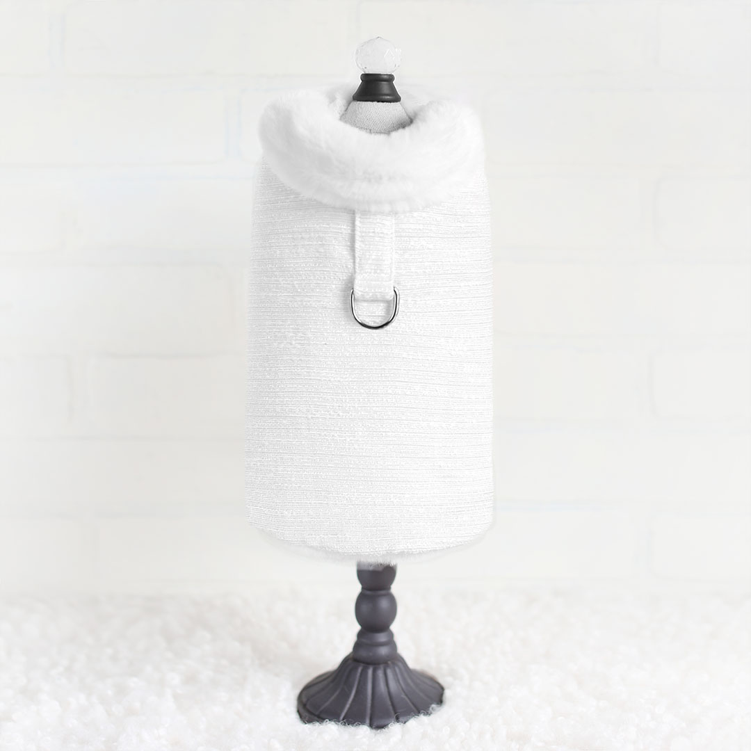 Your precious pooch will look regal in the Zha  Zha (Ja-Ja) Dog Coat by Hello Doggie. Our new coat collection was released just in time for the fall/winter season. When designing this coat we had the pooch in mind, our fur babies get cold too while they're out on the town for holiday shopping or a walk in the park. The coats are made from a beautiful soft tweed blend fabric and are lined with faux fur for a timeless design  and to keep out that extra chill. These coats are perfect to pair up with your favorite Hello Doggie sweater, featuring adjustable velcro straps for a perfect fit when adding layers. It is easy to care for, delicate wash with no softener or bleach and air dry. Our coats are fashionable and most importantly comfortable to wear. Each Coat has a matching harness, sold separately. Limited Edition MSRP $84.00 * Coats are handmade sizes may vary slightly. Made in the USA.
