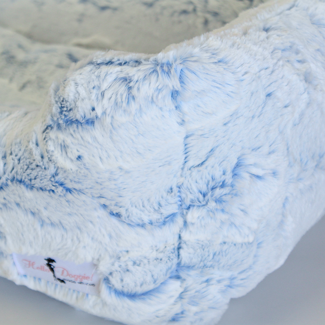 The Whisper Collection by Hello Doggie features high-quality soft fabric dog beds. This bed features a white fabric with a fluorescent tone peeping through. These soft-to-the-touch beds will have your pup snoozing away and cuddly wrapped in an ultra-soft matching dog blanket.  Dimensions Small Bed - 10" x 7"    |    For dogs up to 4 lbs MSRP - $99.99 Large Bed - 14" x 10"  |     For dogs up to 10 lbs MSRP - $119.99 *Bed is handmade and sizes may vary slightly. Made in USA.