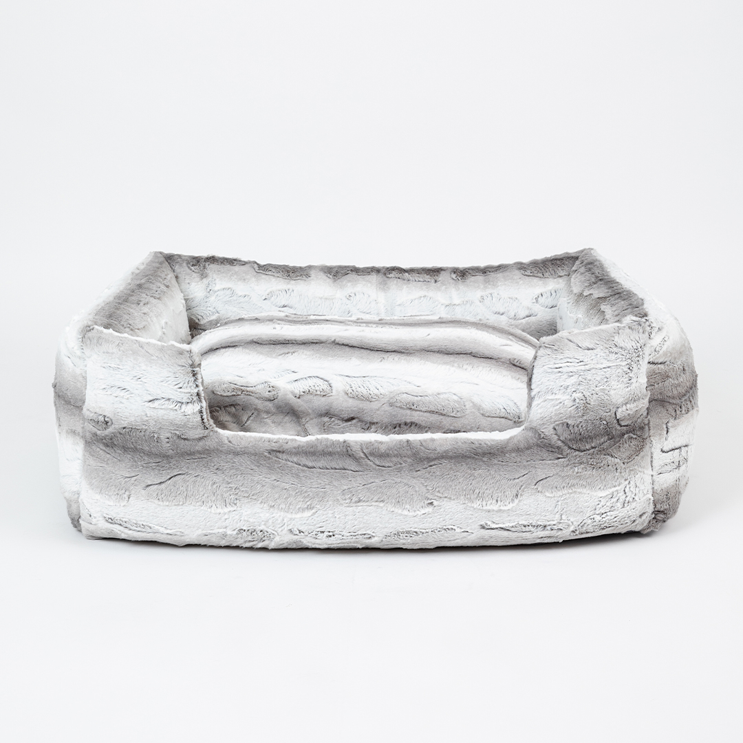 Your large fur baby isn't just a pet, they're royalty! Treat your pup like the king and queen with our new Big Baby Collection by Hello Doggie. This collections offers your pooch their own luxurious bed, where they can snooze away in comfort with plenty of room to stretch out and relax. Made from soft plush fabric and 100% poly-fiber fill, this bed features a non slip floor to hold the bed in place and a removable pillow for easy care. Wash on gentle cycle, no fabric softener or bleach. Air dry or tumble on low.   One Size   - For dogs up to 50 - 70 lbs  Outside - 37" L x 30" W x 10" H   |   Inside - 25" L x 21" W x 6" H |    Bolster - 6"in MSRP - $286.00 *Bed is handmade in the USA and sizes may vary slightly. Made in USA.