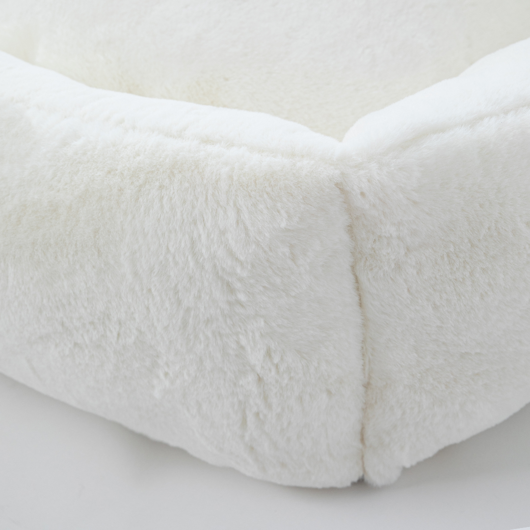 Your large fur baby isn't just a pet, they're royalty! Treat your pup like the king and queen with our new Big Baby Collection by Hello Doggie. This collections offers your pooch their own luxurious bed, where they can snooze away in comfort with plenty of room to stretch out and relax. Made from soft plush fabric and 100% poly-fiber fill, this bed features a non slip floor to hold the bed in place and a removable pillow for easy care. Wash on gentle cycle, no fabric softener or bleach. Air dry or tumble on low.   One Size   - For dogs up to 50 - 70 lbs  Outside - 37" L x 30" W x 10" H   |   Inside - 25" L x 21" W x 6" H |    Bolster - 6"in MSRP - $286.00 *Bed is handmade in the USA and sizes may vary slightly. Made in USA.