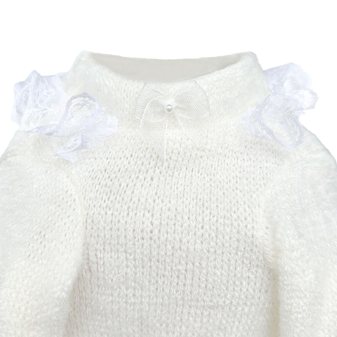 Introducing the charming Lil Lamb Dog Sweater by Hello Doggie! This exquisite piece is designed with premium cotton knit fabric and adorned with a touch of elegance. The handcrafted accessories include romantic lace details, sheer bows accented with delicate pearls, and heart-shaped pockets, all adding a touch of sophistication to this cozy sweater. Crafted with meticulous attention to detail, this sweater is not just comfortable for your furry friend, but also a stylish statement piece for any occasion. For the perfect winter outfit pair with one of our coats. Spot Clean or wash on delicate, no bleach or softener and air dry.  Sizes  |  SM – LG  MSRP  |  $48.00  *Sweaters are handmade and sizes may vary slightly. Made in USA.